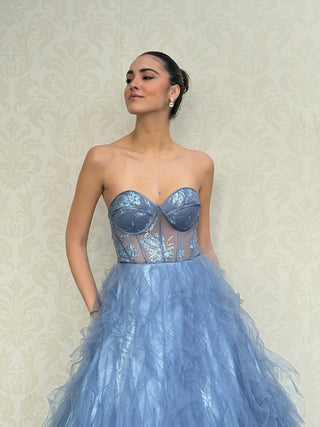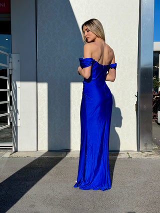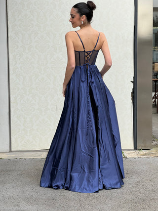Abito Stellato con corpetto a stecche e brillantini con spacco e gonna in raso leggero