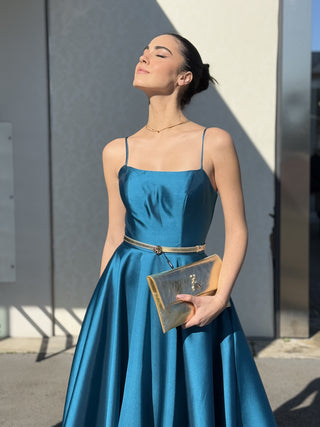 Abito Elena in Raso con Scollo Drappeggiato e Spallina incrociata Dietro
